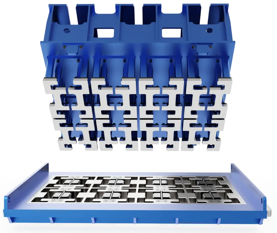 تعمل قوالب تصنيع الطوب تحت اهتزاز عالي التردد، وتأثير الضغط العالي، وظروف كشط قوية لفترات طويلة. خصائص المواد هي العامل الأساسي الذي يحدد مدة الخدمة. تقوم شركة Quangong Machinery Co., Ltd. باختيار سبائك الفولاذ عالية القوة المقاومة للتآكل في تصنيع القوالب الخاصة بها وتقوم بإجراء تصميمات مطابقة للمواد المستهدفة بناءً على ظروف تشغيل المنتج المختلفة. من خلال تحسين البنية الدقيقة للمواد وعمليات المعالجة الحرارية، فإن الأجزاء الرئيسية من القالب تمتلك صلابة ممتازة للصدمات، ومقاومة التعب المستقرة، ومقاومة التآكل العالية. في ظل ظروف الإنتاج المستمر عالية الكثافة، لا يزال القالب قادرًا على الحفاظ على أبعاد القولبة الدقيقة وحواف المنتج الواضحة، مما يقلل بشكل فعال من تكرار الاستبدال ووقت التوقف عن العمل، وبالتالي تحسين كفاءة الإنتاج الإجمالية. في عملية التصنيع، تؤثر دقة القالب بشكل مباشر على جودة المظهر واستقرار التراص لمنتجات الطوب. Quangong Machinery Co., Ltd.، بالاعتماد على مراكز التصنيع CNC عالية الدقة ومعدات المعالجة الآلية، تحقق رقابة صارمة على أخطاء أبعاد تجويف القالب، مما يضمن بقاء التسطيح والعمودية والأبعاد الرئيسية ضمن المعايير العالية. يتم تشكيل هياكل القالب المعقدة بدقة في قطعة واحدة، مما يؤدي بشكل فعال إلى تجنب تقلبات الجودة الناتجة عن أخطاء التجميع. من خلال إجراءات المعالجة الموحدة ونظام مراقبة الجودة الصارم، يضمن كل قالب اتساق أبعاد المنتج واستقرار الدفعة، مما يجعله مناسبًا بشكل خاص للإنتاج على نطاق واسع من الطوب النفاذي عالي الجودة، وطوب الرصف، وطوب حماية المنحدرات، ومختلف منتجات الطوب غير المنتظمة المخصصة.