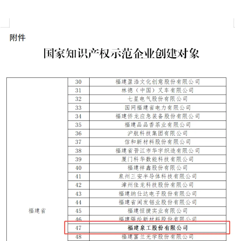 في الآونة الأخيرة، أصدرت الإدارة الوطنية للملكية الفكرية (CNIPA) "إعلانًا بشأن نتائج تقييم العناصر التجريبية الوطنية للبناء في الدولة القوية للملكية الفكرية."شركة فوجيان كوانجونج للآلات المحدودةتم اختيارها بنجاح باعتبارها "مشروع إنشاء مؤسسة وطنية لعرض الملكية الفكرية للفترة 2025-2027" استنادًا إلى قوتها الشاملة في إنشاء الملكية الفكرية واستخدامها وحمايتها وإدارتها. يدل هذا الاختيار الناجح على الاعتراف الرسمي على المستوى الوطني بجهود شركة Quangong Machinery Co., Ltd. في تعزيز تنمية الملكية الفكرية عالية الجودة وخدمة الإستراتيجية الوطنية لبناء أمة قوية للملكية الفكرية.