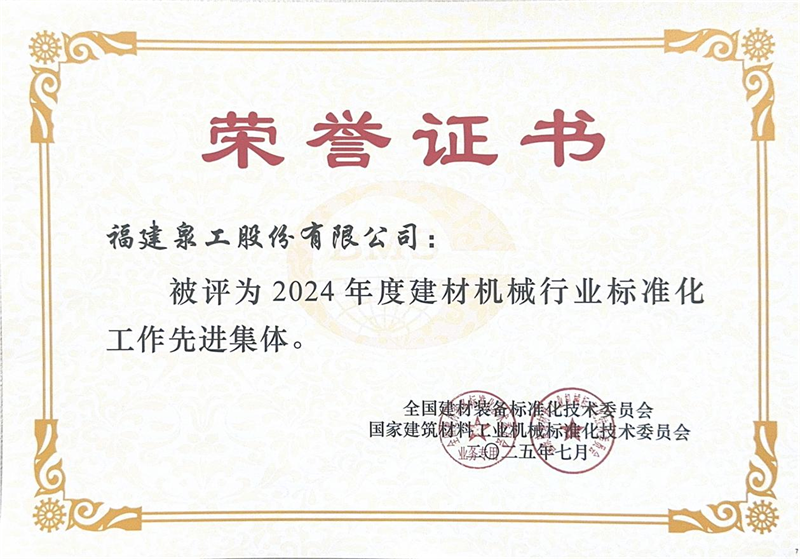 وفي جلسة الثناء التي عقدت في نفس الوقت، حصلت شركة Quangong Machinery Co.,Ltd على لقب "العمل الجماعي المتقدم في أعمال التقييس في صناعة آلات مواد البناء في عام 2024"، وحصل نائب المدير العام للشركة فو جوهوا على لقب "العامل المتقدم في أعمال التقييس في صناعة آلات مواد البناء في عام 2024".