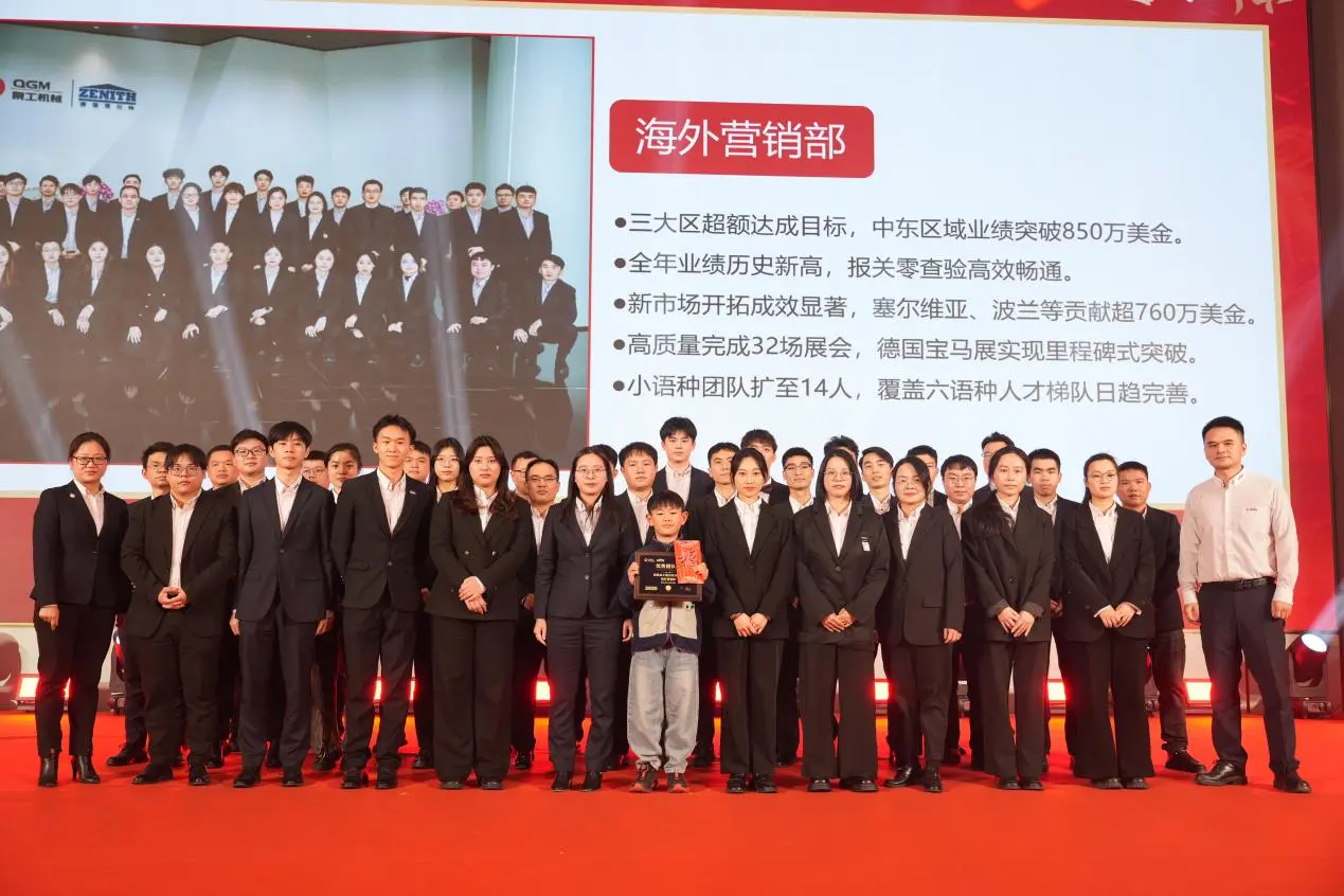 بعد ذلك، ألقى فو شينيوان، المدير العام لشركة Quangong Machinery Co., Ltd.، كلمة ختامية. وأشار إلى أنه في سياق الوضع العالمي المعقد والمتغير باستمرار، فإن التطور المطرد للشركة لا ينفصل عن الجهود المشتركة لجميع الموظفين. في عام 2025، كان فريق التسويق الخارجي أول من حقق هدف الأداء السنوي، وتكيف السوق المحلي بنشاط مع الوضع المتغير، ونجح في إنشاء مشاريع نموذجية في العديد من المدن الرئيسية وحصل على اعتراف كبير من العملاء. وبالنظر إلى المستقبل، ستعمل الشركة رسميًا على الترويج لاستراتيجية موازية لثلاث علامات تجارية: Cenit تركز على السوق فائقة الجودة، وQuangong التي تعمل على تنمية السوق المتوسطة إلى الراقية، وDaorvik التي تخدم السوق متوسطة المدى، وتعزز باستمرار قدرتها التنافسية العالمية. كما أعرب عن خالص امتنانه للفرق التي ستستمر في الذهاب إلى الخطوط الأمامية الخارجية لتنفيذ أعمال التركيب والتشغيل قبل عيد الربيع وبعده.