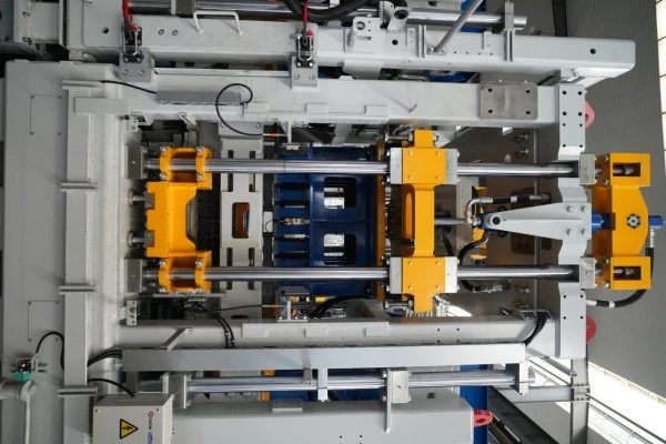 9اضغط على جهاز قفل الرأس تتكون آلية القفل الميكانيكي هذه من كتل قفل عالية القوة، ورأس ضغط على شكل إسفين، وأسطوانات هيدروليكية مزدوجة الفعل. أثناء عملية التشكيل، تقوم الأسطوانات بقيادة كتل القفل لتثبيت رأس المكبس بشكل قطري، مما يشكل طريقًا مسدودًا ميكانيكيًا. يتم بعد ذلك تحرير القالب تحت ضغط مستمر، مما يؤدي بشكل فعال إلى القضاء على الارتداد المرن والحركة الدقيقة - مما يضمن حواف الطوب الحادة والأسطح الملساء ومعدل تأهيل المنتج المحسن بشكل كبير.